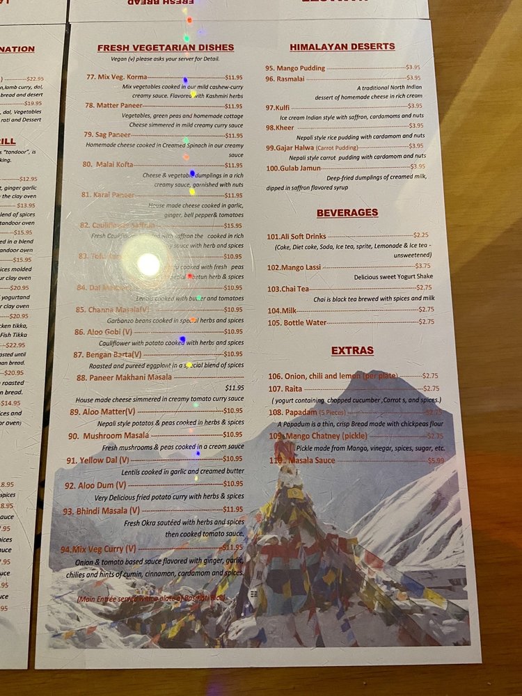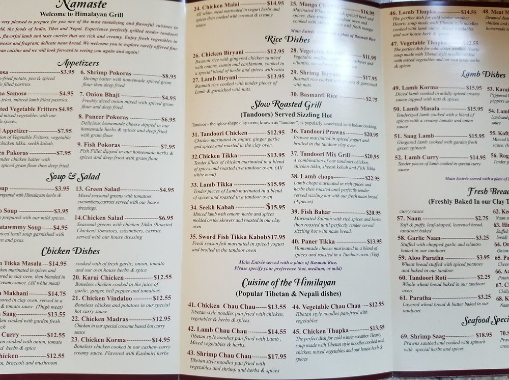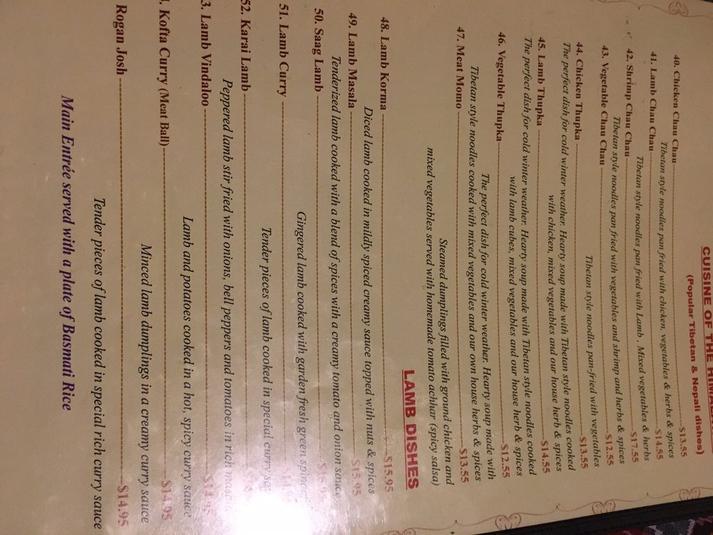 Himalayan Grill, located in Flagstaff, AZ, offers a diverse menu of Himalayan/Nepalese and Indian cuisine. The restaurant provides a range of beverages, including delicious lassi and chai tea. Appetizers like samosas and chicken pakoras are tempting starters. For soup and salad, options include dal soup and tandoori chicken salad. Customer reviews rave about the flavorful dishes, such as Vegetable Korma and Chicken Thukpa, with many praising the vegan options. The restaurant's welcoming atmosphere and quick service make it a standout dining destination. From the scrumptious veggie mixed curry to the mouth-watering butter chicken, Himalayan Grill offers a culinary experience that delights the taste buds and leaves diners wanting more.